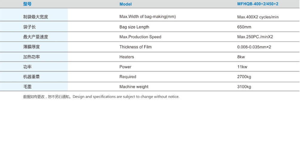 MFHQB-400X2/450系列伺服高速制袋機(jī)(雙道)